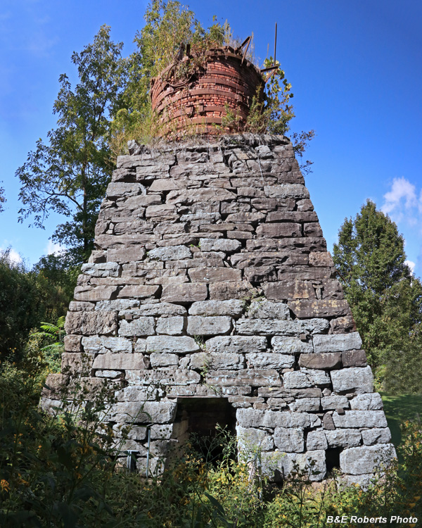 | Overlooking the New River, the Jackson Ferry Shot Tower was built in 1807 to make ammunition for the early settlers. It is one of the few remaining shot towers in the United States. Lead from the nearby Austinville Mines was melted in a kettle atop the 75-foot tower and poured through a sieve, falling through the tower and an additional 75-foot shaft beneath the tower into a kettle of water. |