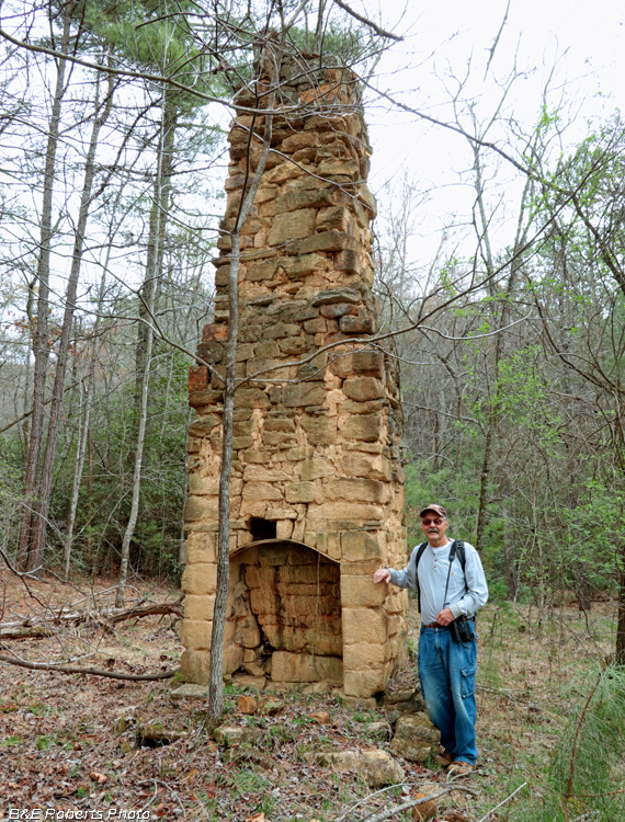 | Chimney at the Stroud place The original clay chinking had been reinforced with cement at some point. |