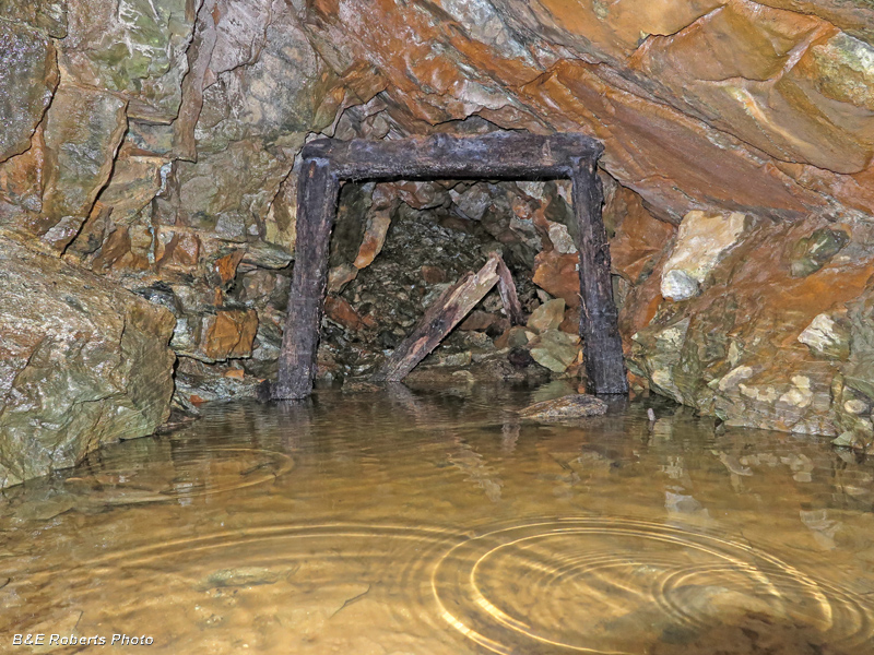 Flooded upper section (support timbers) of one of the Herbert Mine adits.