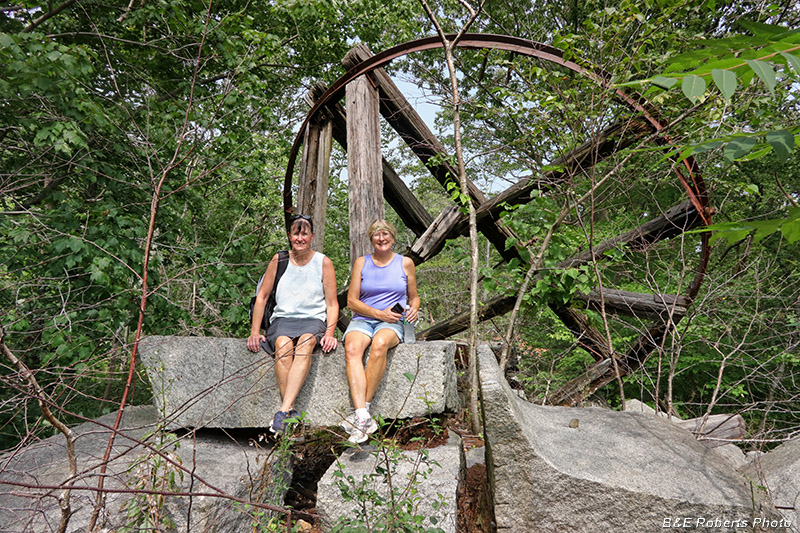 | Walking back up to the quarry rim, we came to the former location of one of the quarry's namesake derricks |