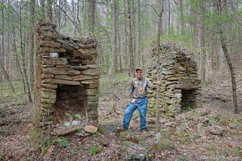 A site with a pair of nice chimneys, in the Raven Cliffs Wilderness. These two chimneys don't appear to have ever had upper stacks. An old photo seems to show them at about the same height, with a cap on one. We heard that this might have been part of an old mining camp.