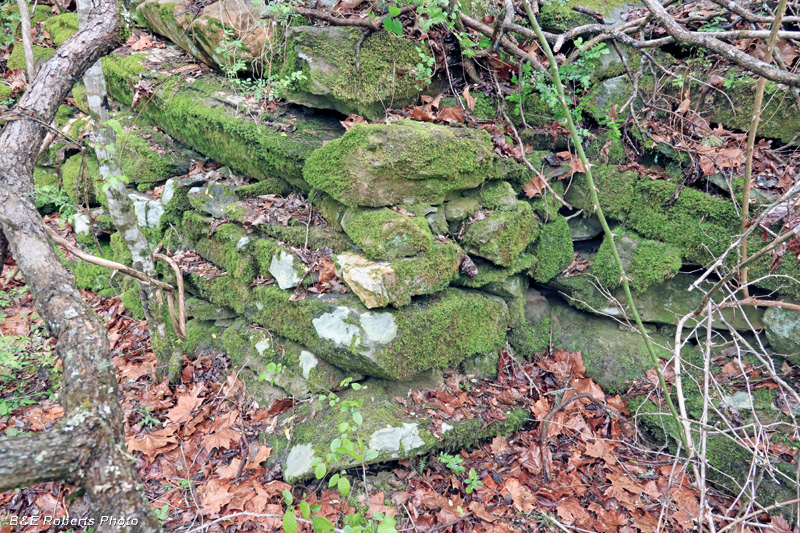 I wondered if the wall might be part of the old mill dam, but it has a "finished" end about 8 feet from the creek.