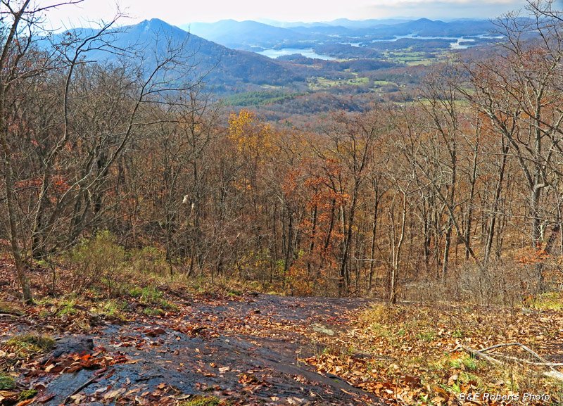 View from top of the first cliff, looking toward Lake Chatuge, with Bell Knob to the left.