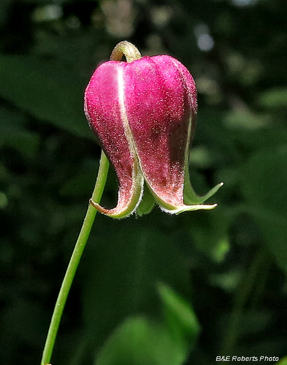 | Leatherflower, aka Vasevine (Clematis viorna) Based on the leaves we saw, there were at least two varieties growing here. |
